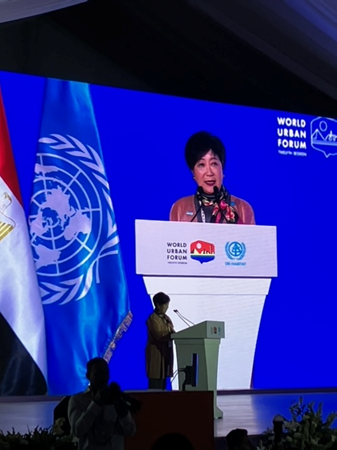 - 国連人間居住計画(UN-Habitat)が主催する「第12回世界都市フォーラム」に登壇。持続可能な都市の実現に向けた取組や、グローバルな課題解決に向け、国境を越えた連携の重要性を発信した。