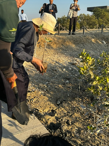 - UAE政府やアブダビ首長国政府が取り組む文化芸術振興やデジタル施策の推進等について視察や意見交換を行うととともに、環境保全に向けたメッセージの発信として、ジュベイル・マングローブ・パークにおいて植樹を行った。