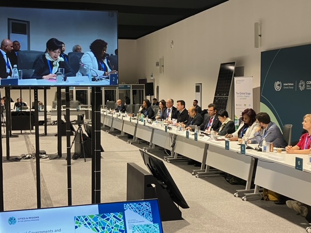 - マルチレベルでの気候変動対策の強化により、都市や地域における気候変動対策だけでなく、都市の気候資金の拡大をどのように支援できるかについて議論を行うパネルディスカッションに、アゼルバイジャン都市計画・建築国家委員会委員長やUAE気候変動・環境大臣等とともに登壇。